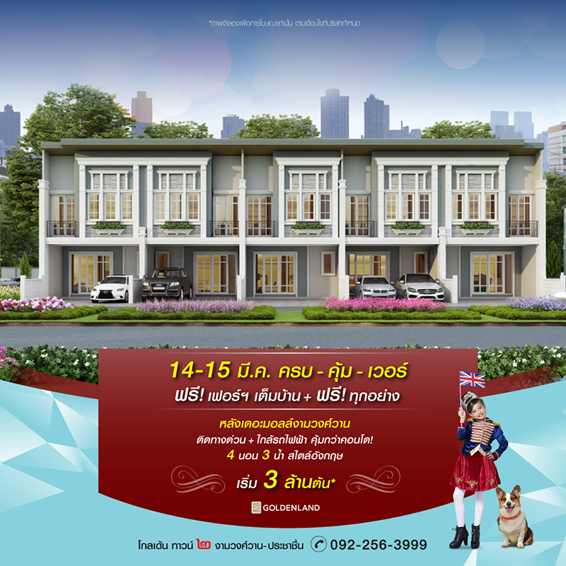 Promotion : 14-15 มี.ค. ครบ คุ้ม เวอร์ ฟรี เฟอร์ฯ เต็มบ้าน + ฟรี ทุกอย่าง* ทาวน์โฮม โครงการใหม่ หลังเดอะมอลล์งามวงศ์วาน ติดทางด่วน+ใกล้รถไฟฟ้า คุ้มกว่าคอนโด 4 ห้องนอน 3 ห้องน้ำ สไตล์อังกฤษ เริ่ม 3 ล้านต้น*