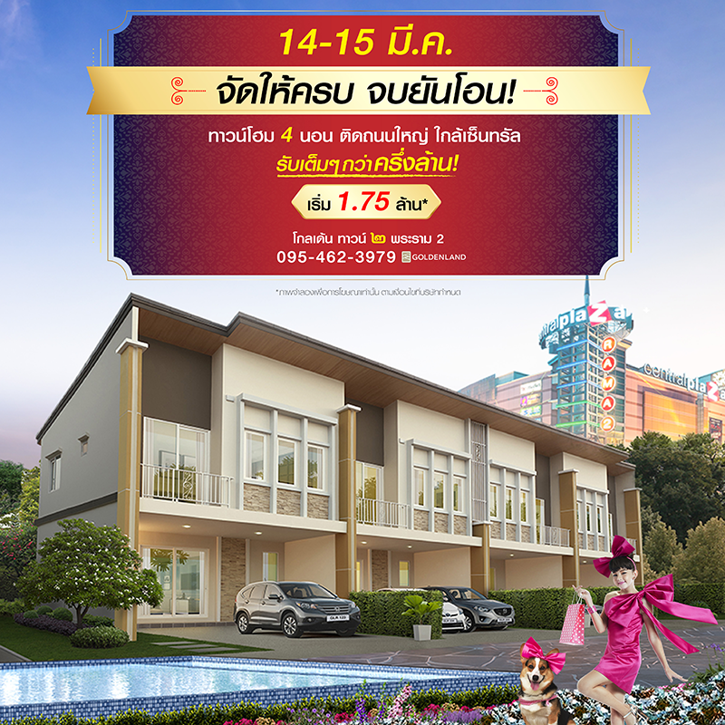 Promotion : 14-15 มี.ค. จัดให้ครบ จบยันโอน... รับเต็มๆ กว่าครึ่งล้าน* ทาวน์โฮม พร้อมอยู่ 4 ห้องนอน ติดถนนใหญ่ ใกล้เซ็นทรัล พระราม 2 ฟังก์ชันครบ พร้อมสโมสร+โรงหนังส่วนตัว เริ่ม 1.75 ล้าน*