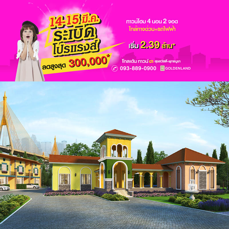 Promotion : 14-15 มี.ค. ระเบิดโปรแรงส์ ลดสูงสุด 300,000* ทาวน์โฮม 4 ห้องนอน 2 ที่จอดรถ อลังการสโมสร สไตล์อิตาลี เดินทางสะดวก ใกล้ทางด่วน+รถไฟฟ้า เริ่ม 2.39 ล้าน*