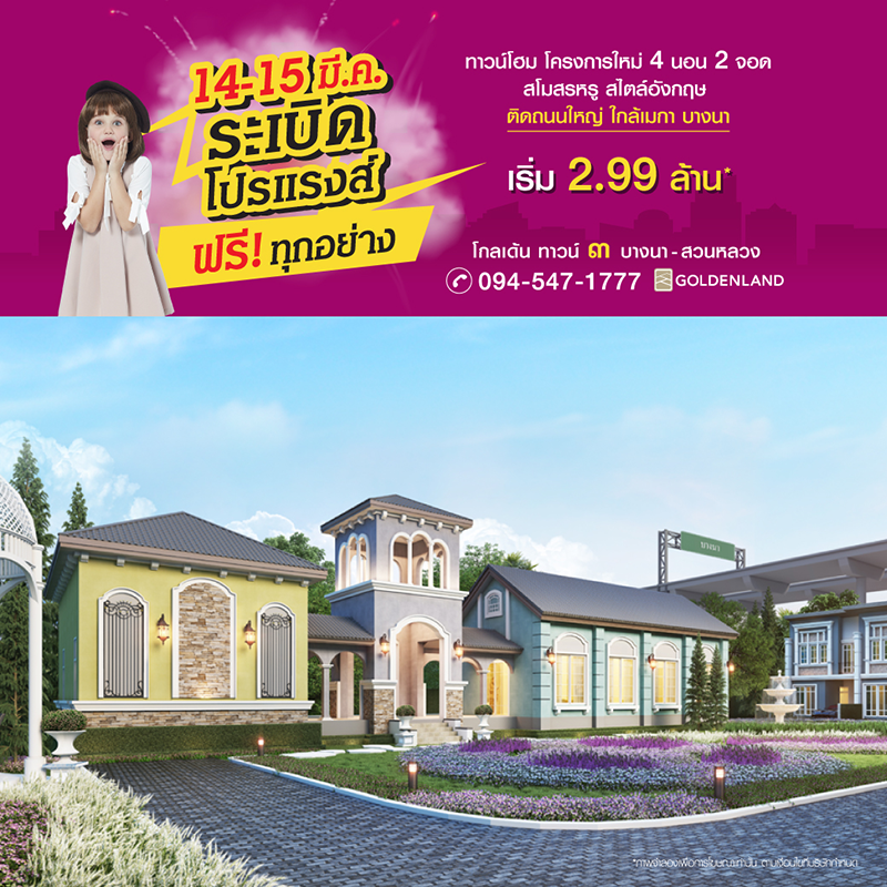 Promotion : 14-15 มี.ค. ระเบิดโปรแรงส์ ฟรี ทุกอย่าง* ทาวน์โฮม โครงการใหม่ ฟังก์ชันครบ 4 ห้องนอน 2 ที่จอดรถ อลังการสโมสรหรู สไตล์อังกฤษ เดินทางสะดวก ติดถนนใหญ่ ใกล้เมกะบางนา เริ่ม 2.99 ล้าน*