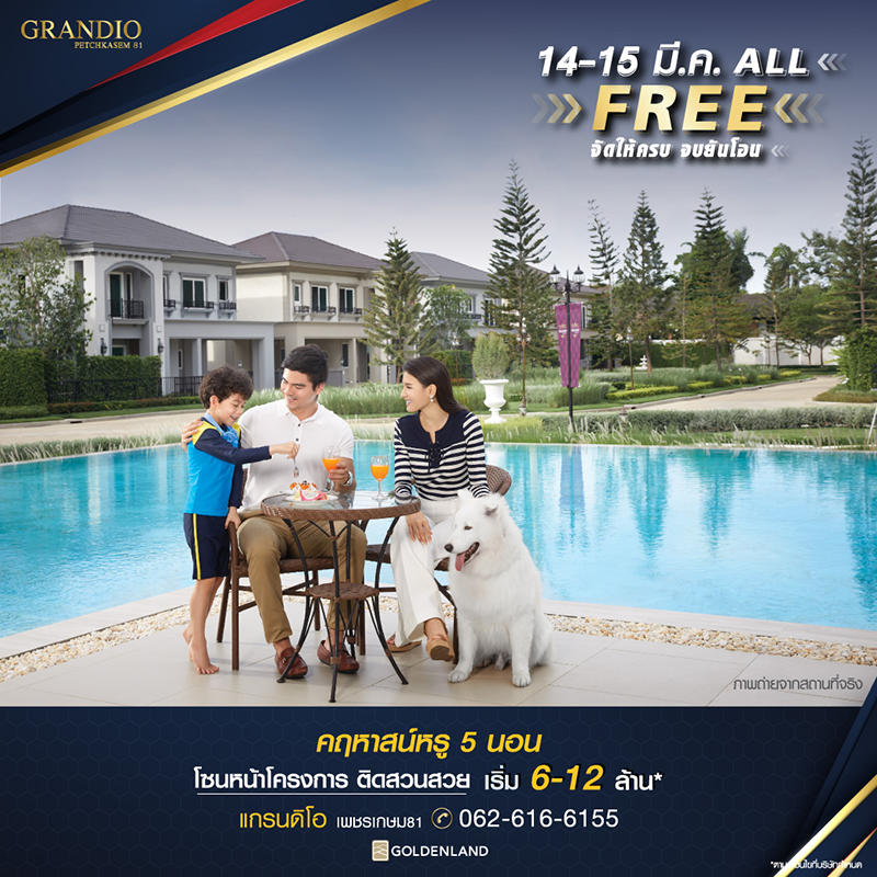 Promotion : ALL FREE จัดให้ครบ จบยันโอน 15-16 มี.ค. เริ่ม 6-12 ล้าน* คฤหาสน์หรู 5 ห้องนอน ติดสวนสวย อลังการคลับเฮ้าส์ เดินทางสะดวก บนทำเลเพชรเกษม เข้า-ออก ได้หลายเส้นทางใกล้รถไฟฟ้า