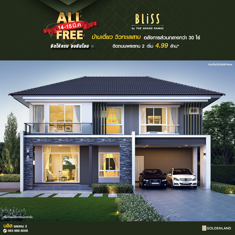 Promotion : 14-15 มี.ค. ALL FREE จัดให้ครบ จบยันโอน บ้านเดี่ยว วิวทะเลสาบ อลังการส่วนกลางกว่า 30 ไร่ สุดยอดทำเลทอง ติดถนนใหญ่พระราม 2 ใกล้เซ็นทรัล เริ่ม 4.99 ล้าน*