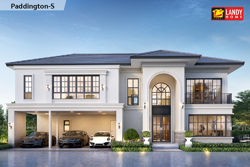 PADDINGTON-S - มีขนาดพื้นที่ใช้สอยรวม 370 ตร.ม. ขนาดอาคาร 20x11 ม. เหมาะสำหรับที่ดินหน้ากว้างแต่ตื้น ขนาด 90 ตร.ว. เป็นบ้าน 2 ชั้น 4 ห้องนอน 5 ห้องน้ำ 3 ที่จอดรถ เหมาะกับครอบครัวขนาดกลาง-ใหญ่ มีห้องนอนชั้นล่างสามารถใช้เป็นห้องนอนผู้สูงอายุหรือปรับเป็นห้องรับรองแขกได้ ราคาก่อสร้างอยู่ที่ 10-12 ล้านบาท