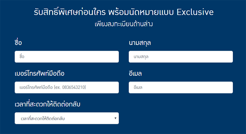 รับสิทธิ์พิเศษก่อนใคร พร้อมนัดหมายแบบ Exclusive เพียงลงทะเบียนด้านล่างสอบถามรายละเอียดโทร. 1375 เว็บไซต์ : https://www.pf.co.thแท็กที่เกี่ยวข้อง :