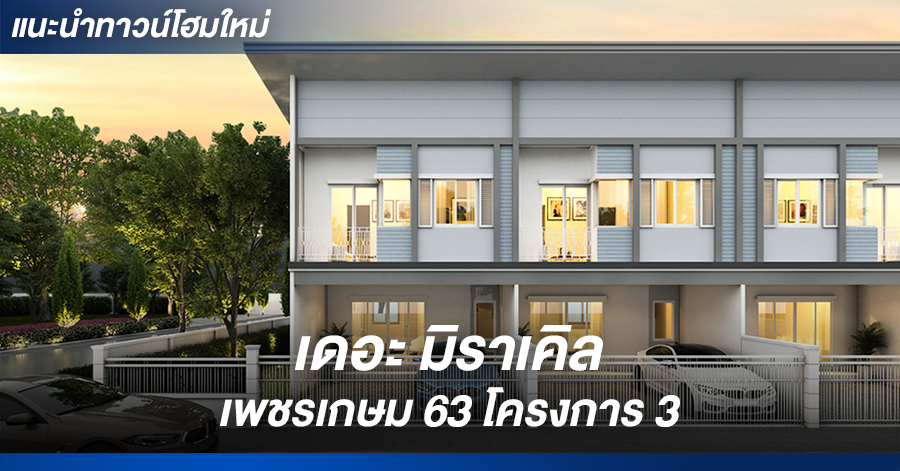 เดอะ มิราเคิล เพชรเกษม 63 โครงการ 3 (The Miracle Plus Petchkasem 63) ทาวน์โฮม 2 ชั้น สไตล์โมเดิร์น ด้วยฟังก์ชันครบครัน 4 ห้องนอน 3 ห้องน้ำ และ 2 ที่จอดรถ พร้อมการเดินทางที่สะดวก เข้า-ออกได้หลากหลายเส้นทาง ทั้งการเดินทางด้วยรถไฟฟ้า เรือ รถสาธารณะ และรถยนต์ส่วนตัว เชื่อมต่อถนนสายหลัก กัลปพฤกษ์-กาญจนาภิเษก เข้าได้ทั้งซอยเพชรเกษม 63 และซอยเพชรเกษม 69 บนพื้นที่โครงการ 27-0-92.3 ไร่ จำนวน 272 ยูนิต ทาวน์โฮม 2 ชั้น หน้ากว้าง 5.7 เมตร พื้นที่ใช้สอย 146 ตร.ม. ขึ้นไป เติมเต็มช่วงเวลาความสุขไปอีกขั้น เพราะติด V Smart Club ฟิตเนสครบวงจร และสวนสาธารณะบางแคภิรมย์ 70 ไร่ เพื่อให้คุณได้ทำกิจกรรมกับครอบครัวในช่วงเวลาที่ดีที่สุด