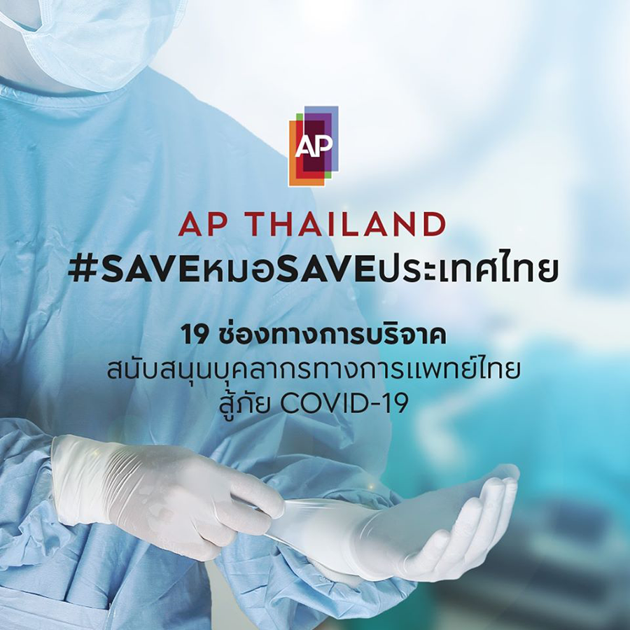 นายวิทการ จันทวิมล รองกรรมการผู้อำนวยการ สายงานกลยุทธ์องค์กรและการสร้างสรรค์ บมจ. เอพี (ไทยแลนด์) กล่าวว่า "จากสถานการณ์การแพร่ระบาดของไวรัสโควิด-19 บริษัทฯ ได้มีการจัดทำแผนความต่อเนื่องทางธุรกิจ การบริหารจัดการกระแสเงินสด ตลอดจนแนวทางการดูแลลูกค้าและพนักงานอย่างสุดกำลัง พร้อมกันนี้ในมิติเพื่อสังคม บริษัทฯ พร้อมเอ็มพาวเวอร์ทุกคนในสังคมให้ผนึกพลังร่วมผ่านวิกฤตโควิด-19 นี้ไปด้วยกัน กับแคมเปญรณรงค์ #SAVEหมอSAVEประเทศไทย