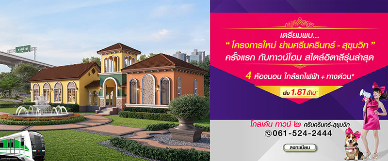 โกลเด้น ทาวน์ ๒ ศรีนครินทร์-สุขุมวิท ทาวน์โฮมสไตล์อิตาลีรุ่นล่าสุด ใกล้รถไฟฟ้า+ทางด่วน เริ่ม 1.87 ล้าน*
