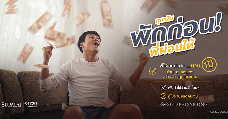 ศุภาลัยใจดี จัดโปรฯ ให้คนอยากมีบ้านช่วงนี้ "พักก่อน! พี่ผ่อนให้" พี่ให้เลยค่าผ่อน...นาน 1 ปี บ้าน และ คอนโดฯ สร้างเสร็จทุกโครงการ