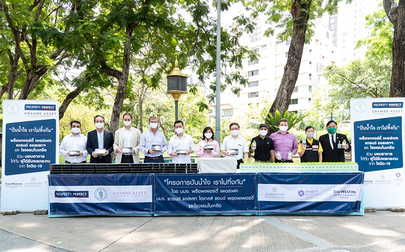 พร็อพเพอร์ตี้ เพอร์เฟค และ แกรนด์ แอสเสท จัดโครงการ "ปันน้ำใจ เราไม่ทิ้งกัน" ร่วมแจกอาหารจากโรงแรมชั้นนำในเครือ