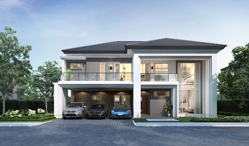 1. มิติใหม่แห่งพื้นที่ใช้สอย เริ่มตั้งแต่ก้าวแรกเข้าสู่ตัวบ้าน ด้วยการออกแบบที่เน้นพื้นที่ใช้สอยที่มากขึ้น พร้อมแยกส่วนระหว่างสเปซสำหรับต้อนรับแขกและสเปซส่วนตัวของครอบครัว เพิ่มความเป็นส่วนตัวและคลายความกังวลในการอยู่อาศัยร่วมกันหลายช่วงวัย รองรับการทำกิจกรรมได้หลากหลายด้วยห้องอเนกประสงค์ ที่สามารถปรับเปลี่ยนเป็นห้องทำงานที่บ้านในช่วง Work from Home หรือปรับเป็นห้องเรียนในรูปแบบออน์ไลน์ (Online Learning Space) ของสมาชิกตัวเล็กในครอบครัว พร้อมพื้นที่สวนสีเขียวรอบบ้าน เพิ่มเวลาคุณภาพของครอบครัวในการสูดอากาศสดชื่นและความร่มรื่นของต้นไม้ใหญ่