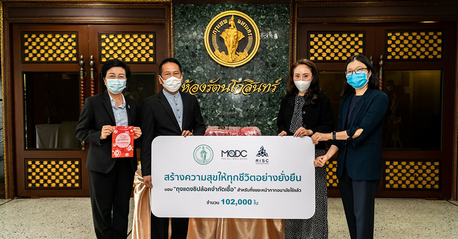 นางศิลปสวย ระวีแสงสูรย์ ปลัดกรุงเทพมหานคร และนายศักดิ์ชัย บุญมา รองผู้ว่าราชการกรุงเทพมหานคร รับมอบ "ถุงแดงซิปล็อกจำกัดเชื้อ" หรือ "Red Zip Lock" จำนวน 102,000 ใบ จากนางสาวแสงรวี โฆสิตไพศาล ผู้อำนวยการ อาวุโสฝ่ายกลยุทย์การสร้างแบรนด์และการตลาด บริษัทแมกโนเลีย ควอลิตี้ ดีเวล็อปเม้นต์ คอร์ปอเรชั่น จำกัด (MQDC) และดร.จิตพัต ฉอเรืองวิวัฒน์ ผู้อำนวยการอาวุโส ศูนย์วิจัยและนวัตกรรมเพื่อความยั่งยืน (RISC) เพื่อนำไปใช้ในพื้นที่กรุงเทพมหานคร 50 เขต ณ ศาลาว่าการกรุงเทพมหานคร