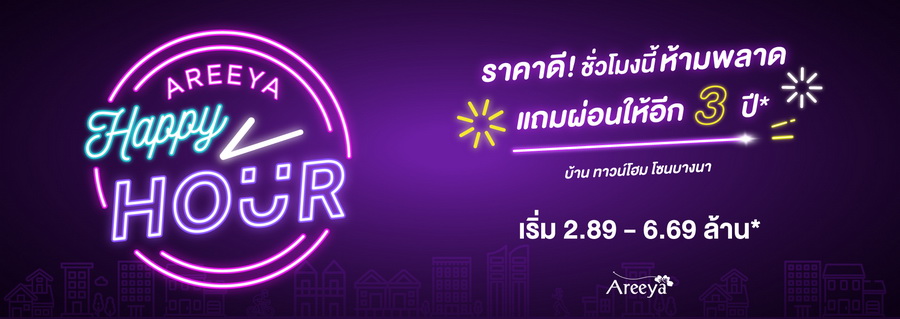 Areeya Happy Hour บ้านราคาดี! ชั่วโมงนี้ห้ามพลาด พร้อมให้คุณใช้ชีวิตบนทำเล "หัวใจ" บางนาวันนี้ กับ 3 โครงการ