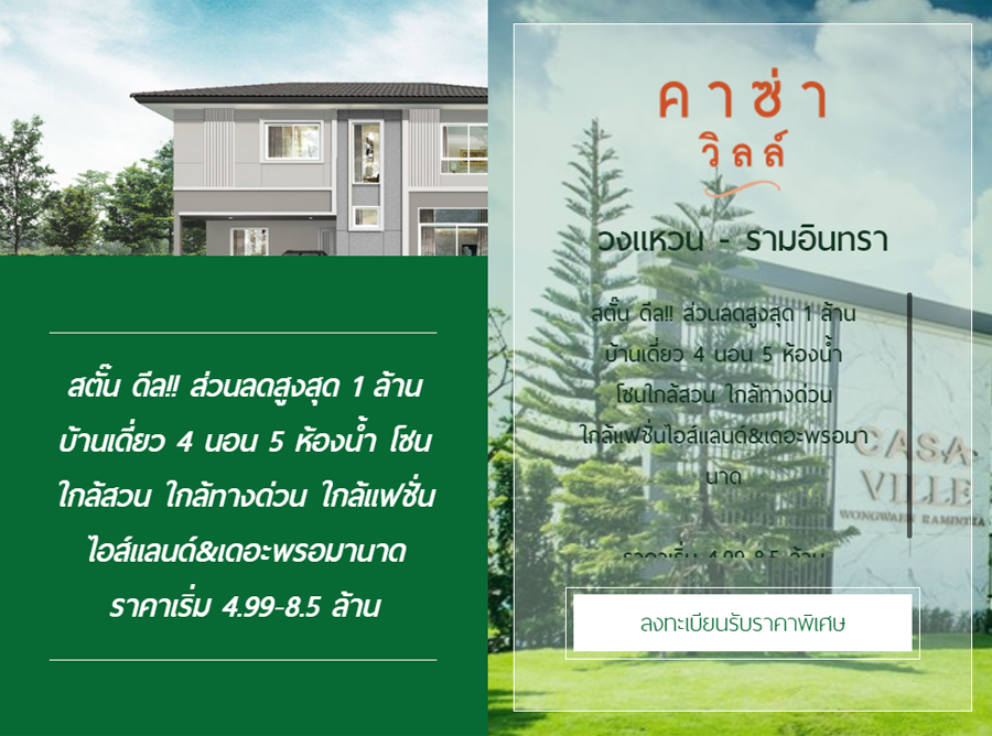 คาซ่า วิลล์ วงแหวน - รามอินทรา" บ้านเดี่ยว 4 ห้องนอน 5 ห้องน้ำ โซนใกล้สวน ใกล้ทางด่วน ใกล้แฟชั่นไอส์แลนด์ & เดอะพรอมานาด ราคาเริ่ม 4.99-8.5 ล้าน