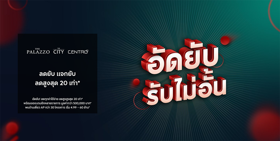 อัดยับ รับไม่อั้น!! ลดสูงสุด 20 เท่า* ลดยับ! ทุกค่าใช้จ่าย ณ วันโอน* แจกยับ! รับของแถมมูลค่ากว่า 500,000 บาท ลงทะเบียนและแอดไลน์เพื่อรับสิทธิพิเศษ เริ่ม 4.99 - 60 ล้าน