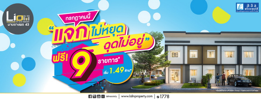 LIO BLISS มาบยางพร 43 กรกฎาคมนี้ "แจกไม่หยุด ฉุดไม่อยู่" ฟรีของแถม 9 รายการ ทาวน์โฮมโครงการใหม่ 2 ชั้น 3-4 ห้องนอน 2 ห้องน้ำ 1-2 ที่จอดรถ ใจกลาง 3 นิคมหลัก เริ่ม 1.49 ล้าน*