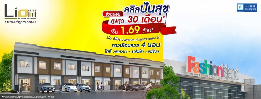 ลลิล ทาวน์ ไลโอ บลิสซ์ วงแหวน - ลำลูกกา คลอง 6 ลลิลปันสุข ช่วยผ่อนสูงสุด 30 เดือน ทาวน์โฮมสวย 4 ห้องนอน ใกล้วงแหวนฯ + รถไฟฟ้า + แฟชั่นฯ เริ่ม 1.69 ล้าน*