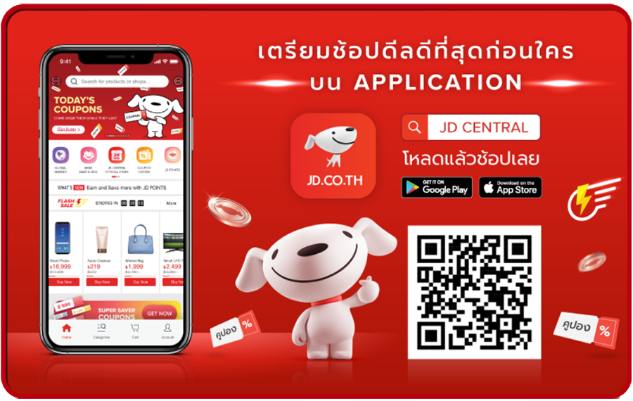 www.jd.co.th หรือดาวน์โหลดแอปพลิเคชัน JD CENTRAL ได้บน AppStore และ PlayStore หรือติดตามผ่านทาง Facebook: