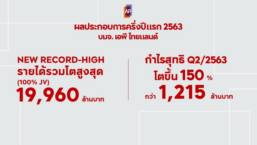 นายภมร ประเสริฐสรรค์ รองกรรมการผู้อำนวยการ สายงานพัฒนาธุรกิจกลุ่มสินค้าทาวน์โฮม บริษัท เอพี (ไทยแลนด์) จำกัด (มหาชน) กล่าวว่า "ในครึ่งปีแรกที่ผ่านมา เอพี ไทยแลนด์ ประสบความสำเร็จในการดำเนินธุรกิจอย่างมาก โดยมี EMPOWER LIVING เป็นจุดมุ่งหมายสำคัญขององค์กร ทั้งนี้ ท่ามกลางสภาวะวิกฤตที่เกิดขึ้น บริษัทฯ ยังสามารถสร้างสถิติการเติบโตทางด้านรายได้ครั้งใหม่ที่สูงสุดเป็นประวัติการณ์ โดยในครึ่งปีแรกบริษัทฯ มีรายได้รวมจากสินค้าแนวราบและกลุ่มคอนโดฯ (100% JV) มากถึง 19,960 ล้านบาท ด้านกำไรสุทธิ (Net Profit) 2 ไตรมาสแรกสูงถึง 1,830 ล้านบาท หากดูในส่วนของรายได้รวม (100% JV) เฉพาะไตรมาส 2 ที่ 13,140 ล้านบาท ซึ่งถือว่าเป็นช่วงเวลาที่มีการประกาศใช้มาตรการล็อกดาวน์ แต่บริษัทฯ ยังคงดำเนินการขายและโอนกรรมสิทธิ์โครงการได้เกินจากที่คาดการณ์ไว้ สะท้อนได้ถึงความมั่นใจของผู้บริโภค ตลอดจนกำลังซื้อที่ยังคงมีอยู่ และเชื่อว่าตลาดอสังหาริมทรัพย์จะค่อยปรับตัวที่ดีขึ้น"