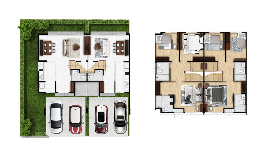 สไตล์ Modern ตอบสนองพฤติกรรมการพักอาศัยของผู้บริโภคที่ต้องการพื้นที่พักผ่อนขนาดใหญ่ เน้นความเป็นส่วนตัว มีฟังก์ชันแยกเป็นสัดส่วน และพื้นที่รับประทานอาหาร เปิดรับมุมมองสวนหลังบ้าน ราคาเริ่มต้น 2 ล้านกว่าบาท พื้นที่ใช้สอย 126 - 141 ตร.ม. บนที่ดินขนาด 20 ตร.ว. ขึ้นไป