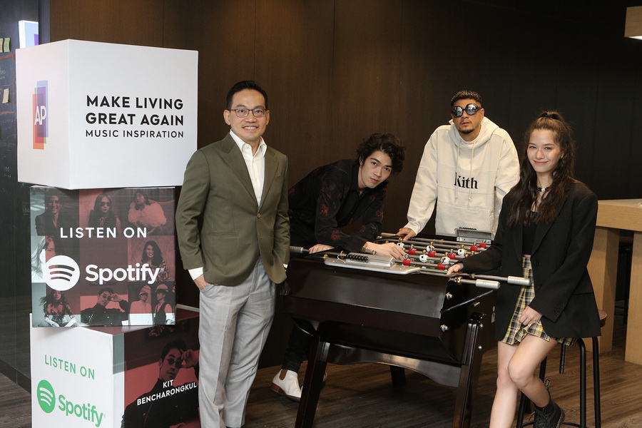 "MAKE LIVING GREAT AGAIN MUSIC INSPIRATION" จับมือ 40 คนดัง จากหลากหลายวงการ หลายสีสันและพลังในการใช้ชีวิต ร่วมคิวเรท 5 เพลย์ลิสต์ 400 บทเพลงพิเศษ บน SPOTIFY แพลตฟอร์มดนตรีระดับโลกเพื่อสร้างแรงบันดาลใจ และพลังในการใช้ชีวิตอย่างมีความหมายให้กับคนไทย ต่อยอดความสำเร็จของแคมเปญ "MAKE LIVING GREAT AGAIN อยู่เพื่อทุกความหมายของคุณ" ร่วมรับฟังบทเพลงพิเศษและสัมผัสแรงบันดาลใจในการใช้ชีวิตไปกับเอพีและ 40 คนดัง ได้แล้ววันนี้ที่