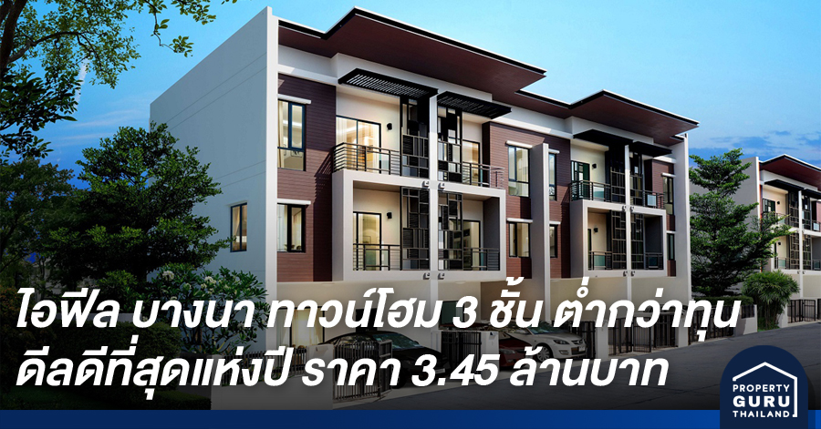 ไอฟีล บางนา ปล่อยทาวน์โฮม 3 ชั้นหลุดดาวน์ ต่ำกว่าทุน ดีลดีที่สุดแห่งปี ราคาเพียง 3.45 ล้านบาท