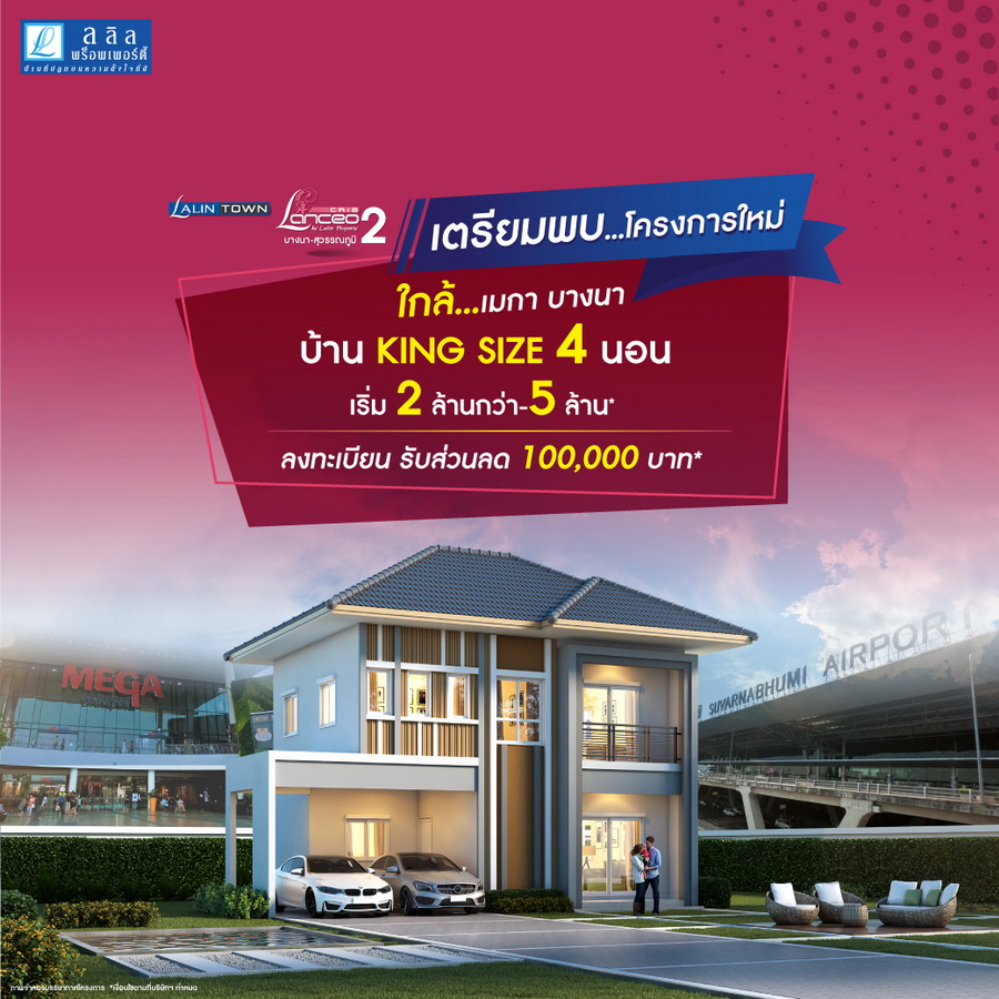 บริษัท ลลิล พร็อพเพอร์ตี้ จำกัด (มหาชน) เตรียมเปิดตัวโครงการใหม่ "ลลิลทาวน์ แลนซีโอ คริป 2 บางนา-สุวรรณภูมิ" บ้าน King Size ดีไซน์ใหม่ล่าสุดสไตล์ฝรั่งเศส 4 ห้องนอน 3 ห้องน้ำ บนทำเลน่าอยู่ของบางนา-ตราด ใกล้ Mega บางนา, สุวรรณภูมิ "ครั้งแรก" กับบ้านหลังใหญ่ ที่ลงตัวกับทุกไลฟ์สไตล์ยุค New Normal พื้นที่ใช้สอยขนาดใหญ่ ปรับฟังก์ชั่นให้ลงตัวได้กับทุกการใช้งาน พร้อมคลับเฮาส์ และฟิตเนสริมสวนรับวิวพาโนราม่าสะดวกทุกการเดินทางสู่ใจกลางเมืองด้วย ทางพิเศษบูรพาวิถี วงแหวนรอบนอก และมอเตอร์เวย์ ใกล้แหล่งงานและ Lifestyle Mall ขนาดใหญ่ อาทิ Mega บางนา, Market Village สุวรรณภูมิ, Robinson ลาดกระบัง และ The Paseo ในราคาเริ่มต้น 2 ล้านกว่า - 5 ล้านบาทเท่านั้น*ผู้ที่สนใจสามารถลงทะเบียนในเว็บไซต์ เพื่อรับโปรโมชั่นพิเศษในวัน Pre-Sale ฟรี! ทุกค่าใช้จ่ายวันโอน ค่าส่วนกลาง สวนสวยสไตล์โมเดิร์น พร้อมรับส่วนลดเพิ่ม 100,000 บาท และจองแปลงสวยรอบสวนทำเลหน้าโครงการก่อนใคร!!สอบถามรายละเอียดเพิ่มเติม โทร. 065-936-6270 ถึง 1 Call Center 1778 หรือ www.lalinproperty.comแท็กที่เกี่ยวข้อง :