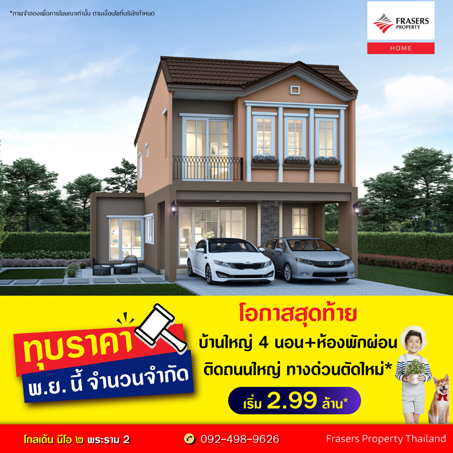 Promotion : 1-30 พ.ย.นี้ โอกาสสุดท้าย ในจำนวนจำกัด ทุบราคาแรง แซงทุกโปร บ้านใหญ่ 4 นอน + ห้องพักผ่อน ย่านพระราม 2 ติดถนนใหญ่ ทางด่วนตัดใหม่* เริ่ม 2.99 ล้าน*