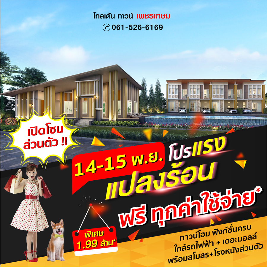 Promotion : 14-15 พ.ย. นี้ โปรแรง แปลงร้อน เปิดโซนส่วนตัว โปรสุดฟิน ฟรี! ทุกค่าใช้จ่าย* พลาดไม่ได้แล้ว กับราคาสุดพิเศษ!! เริ่มเพียง 1.99 ล้าน* ทาวน์โฮม 4 ห้องนอน 3 ห้องน้ำ ฟังก์ชันครบครัน ตอบโจทย์ทุกไลฟ์สไตล์ ทำเลคุณภาพใกล้รถไฟฟ้า + เดอะมอลล์ พร้อมสโมสร + โรงหนังส่วนตัว*