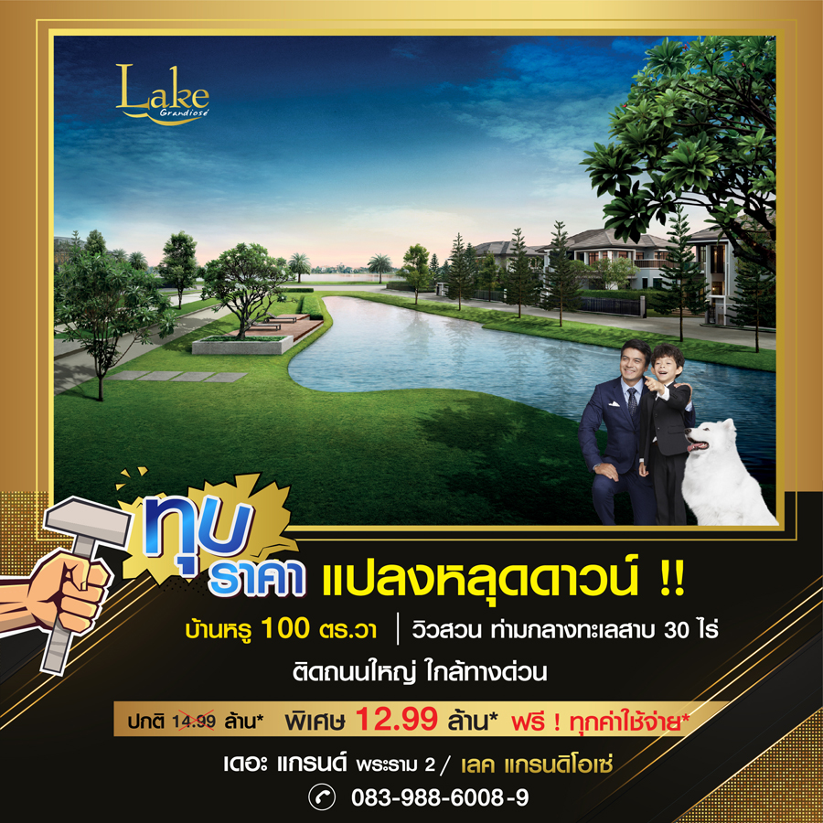 Promotion : 14 ต.ค. - 13 พ.ย. The Ultimate Lakeside Residence บ้านหรู ใหม่ล่าสุด ริมทะเลสาบ ทุบราคาแรง แปลงหลุดดาวน์ ปกติ 14.99 ล้าน* พิเศษ 12.99 ล้าน* พร้อมข้อเสนอสุดคุ้ม ฟรี ทุกค่าใช้จ่าย* บ้านหรู 100 ตร.ว. พร้อมวิวสวน ให้คุณผ่อนคลายกับสวนธรรมชาติ บรรยากาศรีสอร์ทท่ามกลางทะเลสาบกว่า 30 ไร่ บนทำเลศักยภาพย่าน พระราม 2 ติดถนนใหญ่ ใกล้ทางด่วน