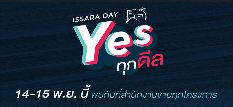 ISSARA DAY Yes ทุกดีล เริ่มแล้วตั้งแต่วันนี้ จนถึง 15 พ.ย. และจะมีการจัดกิจกรรมของแต่ละโครงการในวันที่ 14 - 15 พ.ย. โดยลูกค้าที่สนใจโครงการไหน สามารถแวะไปเยี่ยมชมได้ โดยเงื่อนไขของแต่ละโปรโมชั่นเป็นไปตามที่แต่ละโครงการกำหนด หรือ ดูรายละเอียดเพิ่มเติมได้ที่