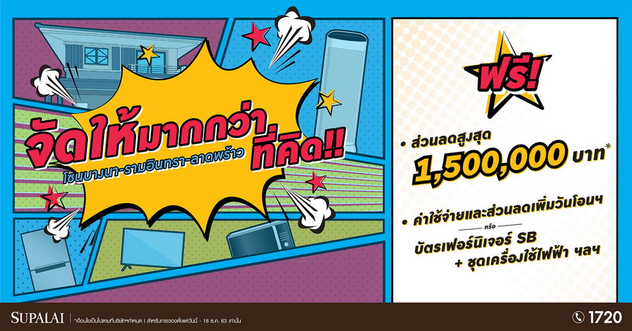 จัดให้มากกว่าที่คิด!! ศุภาลัย โซนบางนา-รามอินทรา-ลาดพร้าว ฟรี!! ส่วนลดสูงสุด 1,500,000 บาท* บ้านดี ราคาโดน เริ่มเพียง 2 ล้าน* สำหรับการจองตั้งแต่วันนี้ - 18 ธันวาคม 2563 เท่านั้น