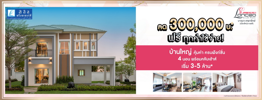 "ลลิล ทาวน์ แลนซีโอ คริป บางนา - เทพารักษ์" เปิดจองโซนใหม่ ใกล้คลับเฮ้าส์ รับส่วนลดสูงสุด 300,000 บ.* ฟรีทุกค่าใช้จ่าย !! แบบบ้านดีไซน์ใหม่ในสไตล์ Modern คุ้ม ครบทุกฟังก์ชัน 4 ห้องนอน 3 ห้องน้ำ พร้อมคลับเฮ้าส์ ฟิตเนส วิวสวนพาโนรามา ทำเลดีที่สุด ติดถนนใหญ่ เดินทางสะดวก เชื่อมต่อทางด่วนบูรพาวิถี เริ่ม 3-5 ล้านบาท*