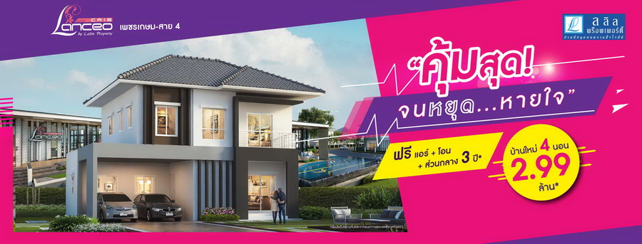 "แลนซีโอ คริป เพชรเกษม - พุทธมณฑลสาย 4" คุ้มสุด ! จนหยุดหายใจ บ้านใหม่ 4 ห้องนอน บนทำเล ถ.เพชรเกษม และ พุทธมณฑลสาย 4 พิเศษ! จองวันนี้ ฟรีทุกค่าใช้จ่าย + แอร์ เริ่ม 2.99 ล้าน*