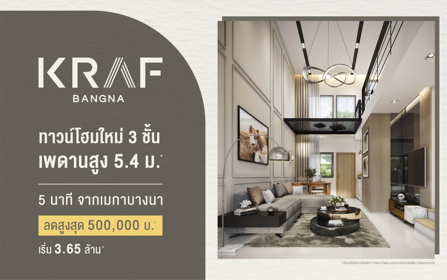"อัลติจูด คราฟ บางนา" ทาวน์โฮมใหม่ 3 ชั้น เพดานสูง 5.4 เมตร 5 นาที จากเมกา บางนา ลดสูงสุด 500,000 บาท เริ่ม 3.65 ล้านบาท*