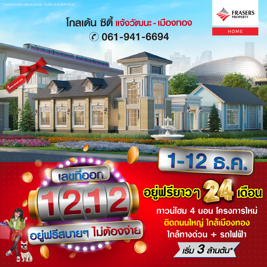 Promotion : 1-12 ธ.ค. ซื้อบ้านตอนนี้ ให้อยู่ฟรียาวๆ นาน 24 เดือน* Premium