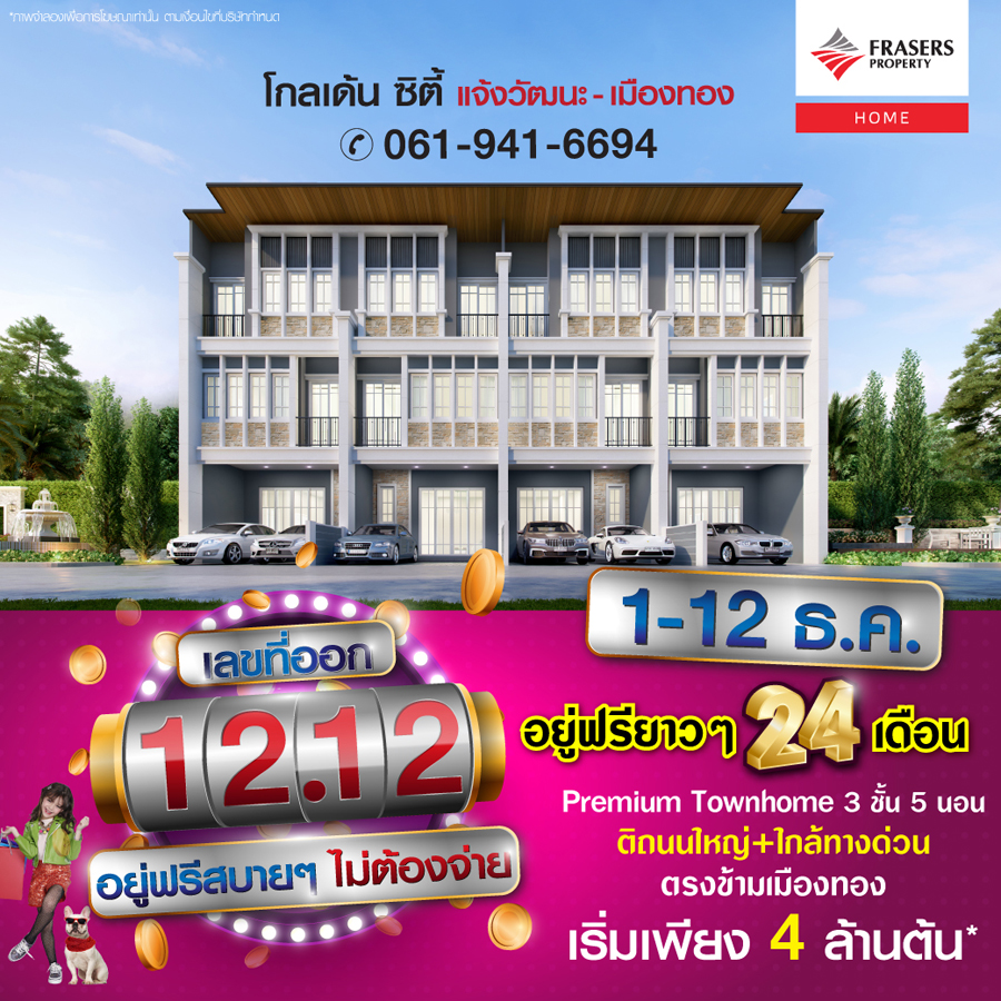 Promotion : 11-12 ธ.ค. ซื้อบ้านตอนนี้ ให้อยู่ฟรียาวๆ นาน 24 เดือน* ทาวน์โฮมหรู 4 นอน โครงการใหม่ สไตล์อังกฤษติดถนนใหญ่ ใกล้เมืองทอง + ทางด่วน + รถไฟฟ้า เริ่ม 3 ล้านต้น*