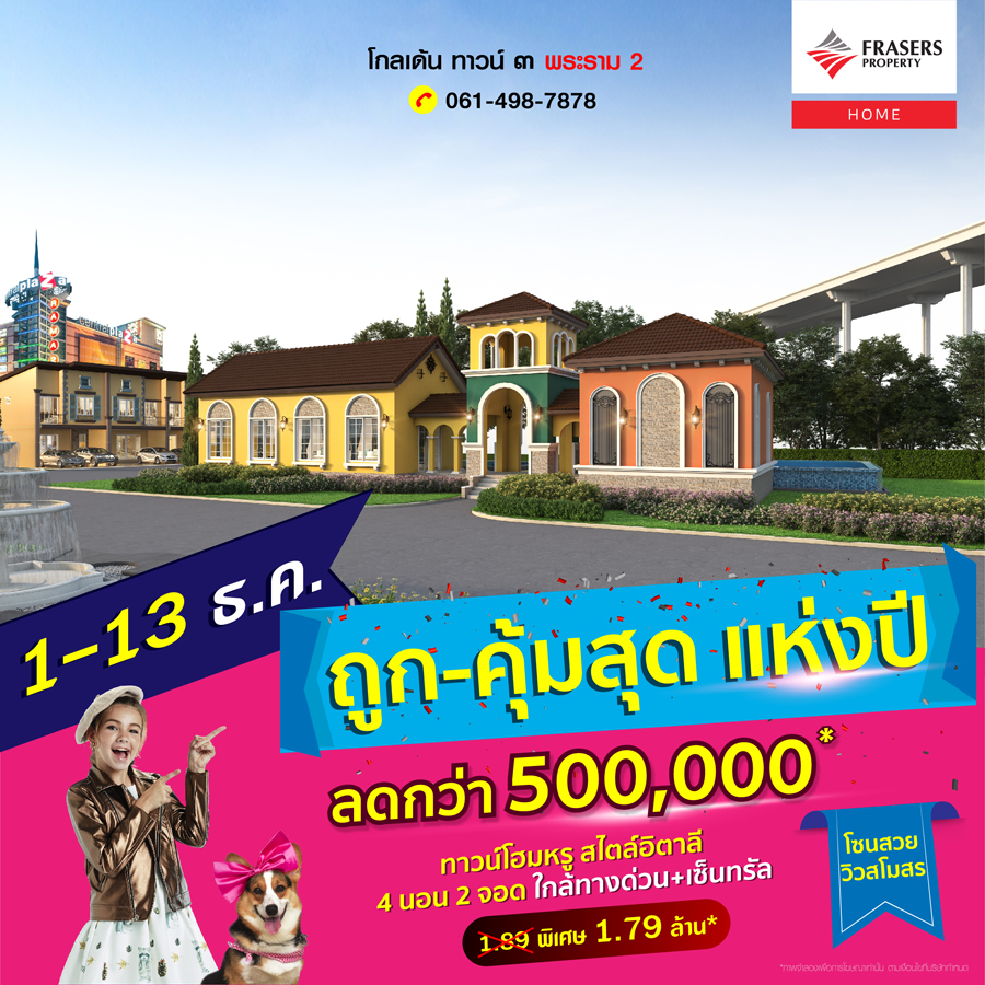Promotion : 1-13 ธ.ค. นี้ หยุดทุกการรอคอย ถูก-คุ้มสุดแห่งปี ลดกว่า 500,000 บาท* พลาดไม่ได้แล้วคร๊าบ กับราคาสุดพิเศษ!! เริ่มเพียง 1.79 ล้าน* ทาวน์โฮมหรู สไตล์อิตาลี 4 ห้องนอน 2 ที่จอดรถ โซนใกล้สโมสร สวนสวย ติดนนใหญ่ ใกล้ทางด่วน + เซ็นทรัล เริ่ม 1.79 ล้าน*