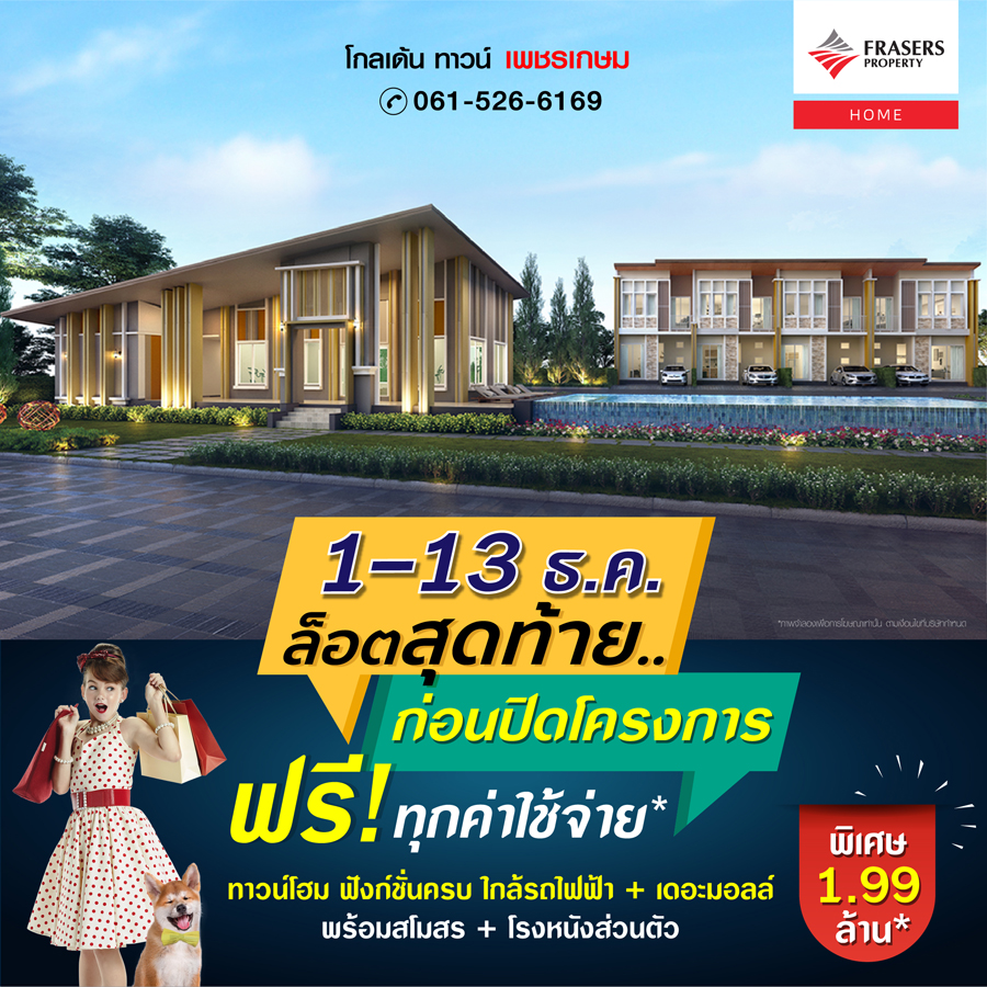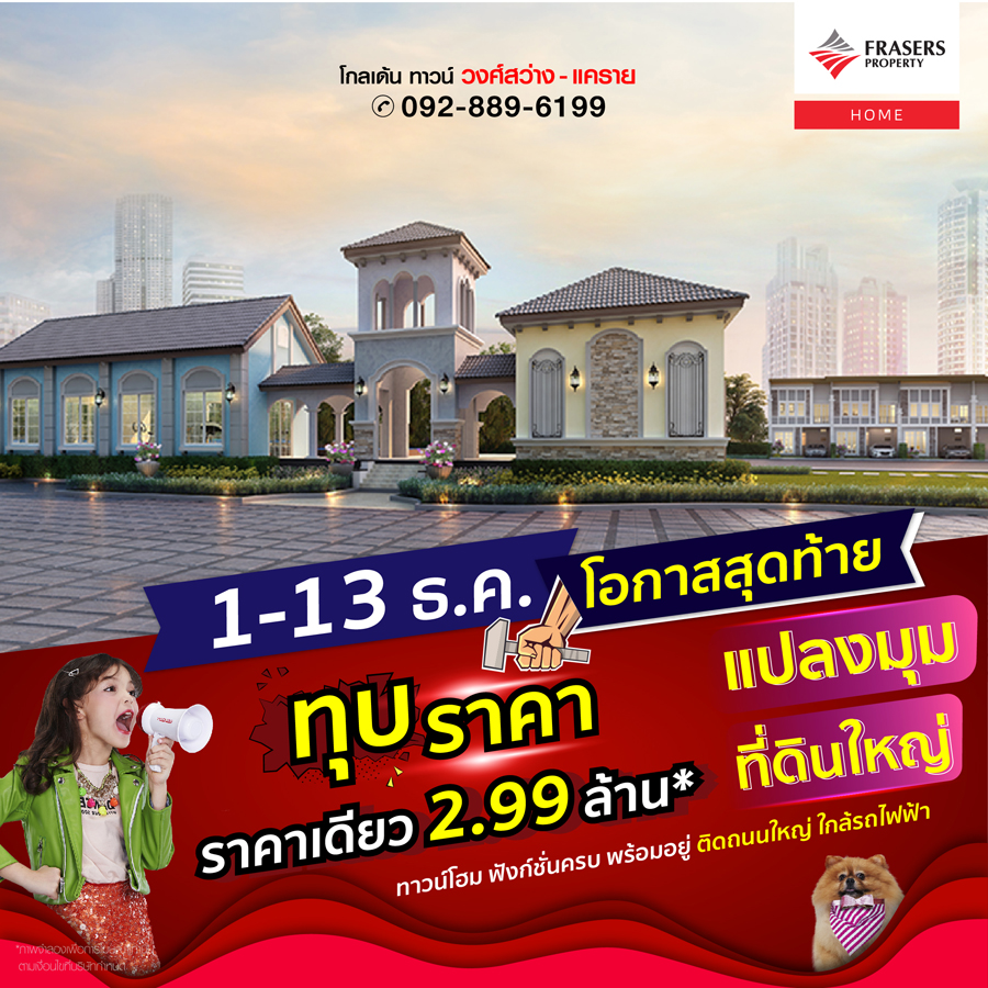 Promotion : 1-13 ธ.ค. นี้ ล็อตสุดท้ายก่อนปิดโครงการ ฟรี! ทุกค่าใช้จ่าย* ราคาพิเศษ!! 1.99 ล้าน* ทาวน์โฮม 4 ห้องนอน 3 ห้องน้ำ ฟังก์ชันครบครัน ตอบโจทย์ทุกไลฟ์สไตล์ ทำเลคุณภาพใกล้รถไฟฟ้า + เดอะมอลล์ พร้อมสโมสร + โรงหนังส่วนตัว*