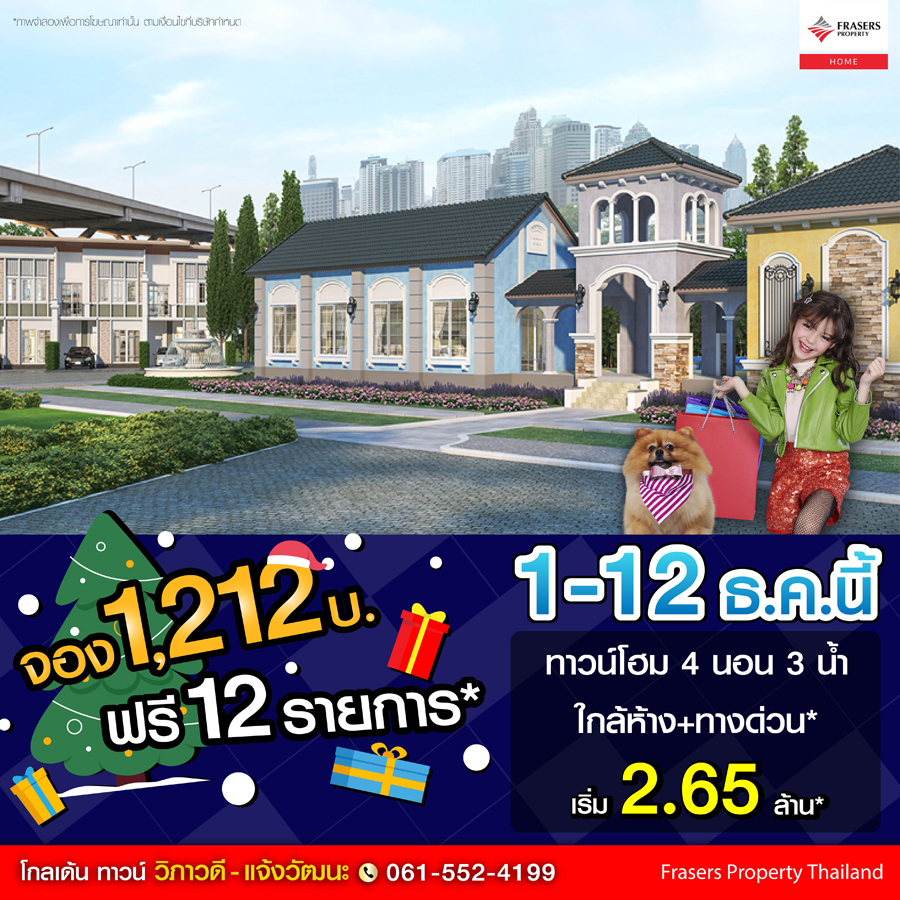 Promotion : 1-12 ธ.ค. นี้ จอง 1,212 บาท ฟรี 12 รายการ* ทาวน์โฮม 4 ห้องนอน 3 ห้องน้ำ พร้อมห้องพระ + โรงหนังส่วนตัว* อลังการสโมสรสไตล์อังกฤษ บนทำเลศักยภาพ ใกล้ห้างฯ + ทางด่วน + รถไฟฟ้า* เริ่ม 2.65 ล้าน*