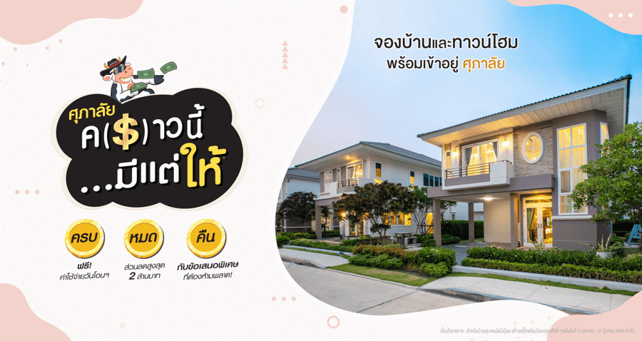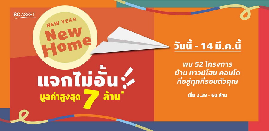 New Year New Home โปรโมชั่นพิเศษต้อนรับปี 2021 แจกไม่อั้น มูลค่าสูงสุด 7 ล้านบาท* วันนี้ - 14 มีนาคม 2564 นี้ พบ 52 โครงการ บ้าน ทาวน์โฮม คอนโด ที่อยู่ทุกที่รอบตัวคุณ แจกแอร์ทั้งหลัง, เฟอร์นิเจอร์แต่งครบ, ฟรีทุกค่าใช้จ่ายวันโอนฯ หรือ ส่วนลดแบบจัดหนัก จัดเต็ม ก็ยกขบวนมาเพื่อให้เป็นของขวัญชิ้นใหญ่ ต้อนรับปีใหม่ที่เราตั้งใจมอบให้สำหรับคุณ เริ่ม 2.39 - 60 ล้านบาท*