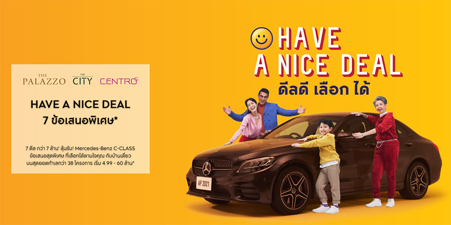 Have A Nice Deal :) 7 ดีล กว่า 7 ล้าน' ลุ้นรับ! Mercedes-Benz C-CLASS มูลค่ากว่า 2.69 ล้าน* ข้อเสนอสุดพิเศษ ที่เลือกได้ตามใจคุณ กับบ้านเดี่ยว บนสุดยอดทำเลกว่า 38 โครงการ เริ่ม 4.99 - 60 ล้าน*