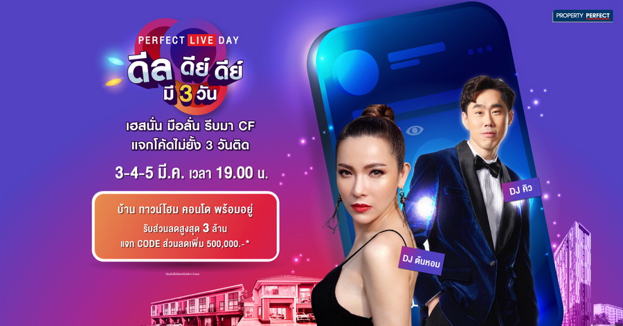 เพอร์เฟค จัด LIVE สด PERFECT LIVE DAY 3-5 มี.ค.นี้ พบบ้าน ทาวน์โฮม คอนโดดีลพิเศษลด On Top ทุกยูนิต