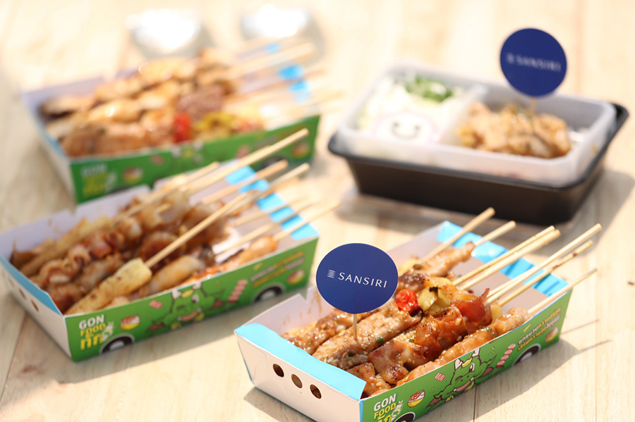 แสนสิริ นำโดย ชลีรัตน์ ต่อจรัส (ซ้าย) ผู้อำนวยการฝ่ายลูกค้าสัมพันธ์และองค์กร บริษัท แสนสิริ จำกัด (มหาชน) ขนทัพคาราวานฟู้ด ทรัค (Food Truck) เสิร์ฟความอร่อยให้ลูกบ้านอิ่มท้องแฮปปี้กันถึงที่โครงการกับบรรยากาศปิคนิคสุดชิลล์ในสวนสีเขียว เริ่มต้นที่โครงการ เศรษฐสิริ พัฒนาการ (Setthasiri Pattanakarn) โดยบุณย์ญานุช บุญบำรุงทรัพย์ (ขวา) ประธานเจ้าหน้าที่บริหาร ด้านการสร้างโอกาสทางการตลาดกลุ่มธุรกิจอาหาร บริษัท ฟู้ดแพชชั่น จำกัด นำพี่ใหญ่อย่าง "GON Food ทัก" กับครั้งแรกเมนูปิ้งย่างแบบเสียบไม้ แท็กทีมมาพร้อมขบวนน้องๆ ฟู้ด ทรัค กลุ่มเอสเอ็มอี อีกมากมายจากแคมเปญ "Sansiri x SCB : Build for All สร้างไปด้วยกัน" สานต่อความมุ่งมั่นของแสนสิริเพื่อช่วยเหลือธุรกิจร้านค้าขนาดเล็กที่ได้รับผลกระทบในช่วงสถานการณ์นี้ และการช่วยสนับสนุนซื้อสินค้าของลูกบ้านแสนสิริในโครงการต่างๆ อีกด้วย