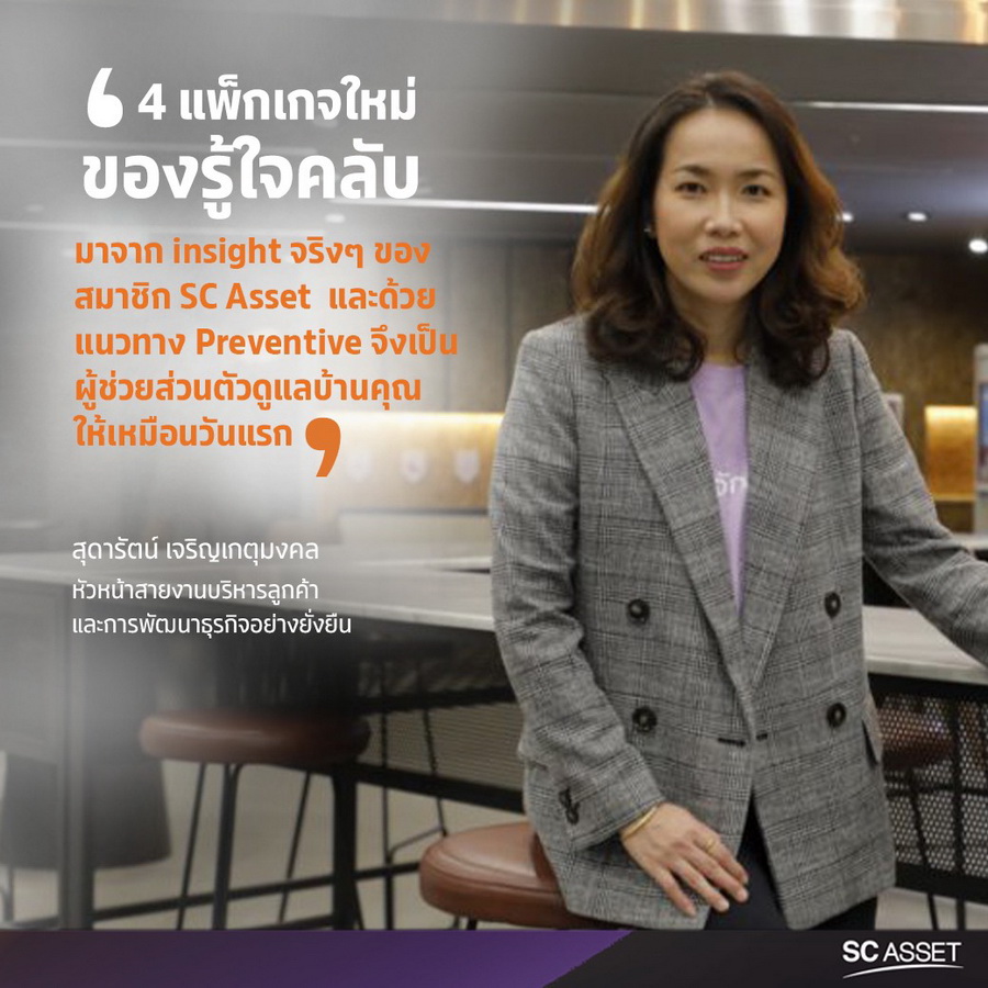 บริษัท เอสซี แอสเสท คอร์ปอเรชั่น จำกัด (มหาชน) ผู้นำ Living Solutions Provider โดยนางสาวสุดารัตน์ เจริญเกตุมงคล หัวหน้าสายงานบริหารลูกค้าและการพัฒนาธุรกิจอย่างยั่งยืน เปิดเผยถึงความยั่งยืนของแพลตฟอร์มของ 'รู้ใจคลับ (RueJai Club)' เพื่อสะท้อนถึงการส่งมอบสินค้าและบริการคุณภาพมาตรฐานสูงให้แก่ลูกบ้านในทุกระดับ ว่า