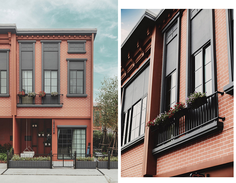 Façade และสีสันของตัวบ้านรวมถึงสถาปัตยกรรมต่างๆ ใช้สีน้ำตาลอิฐ สไตล์วินเทจ หรูหรา มีดีไซน์ หน้าต่างแนวสูงและคิ้วบัวรูปโค้งเป็นเอกลักษณ์ แรงบันดาลใจจากหมู่บ้าน Greenwich Village ทางทิศตะวันตกของเกาะแมนฮัตตันตอนล่างซึ่งเป็นหมู่บ้านที่ถือได้ว่าเป็นศูนย์กลางแห่งวัฒนธรรมรวมทั้งเป็นแหล่งรวมคาเฟ่เก๋ๆ คลับดนตรีแจ๊สและอาคารที่มีสถาปัตยกรรมอิฐสีน้ำตาล ที่มีเสน่ห์