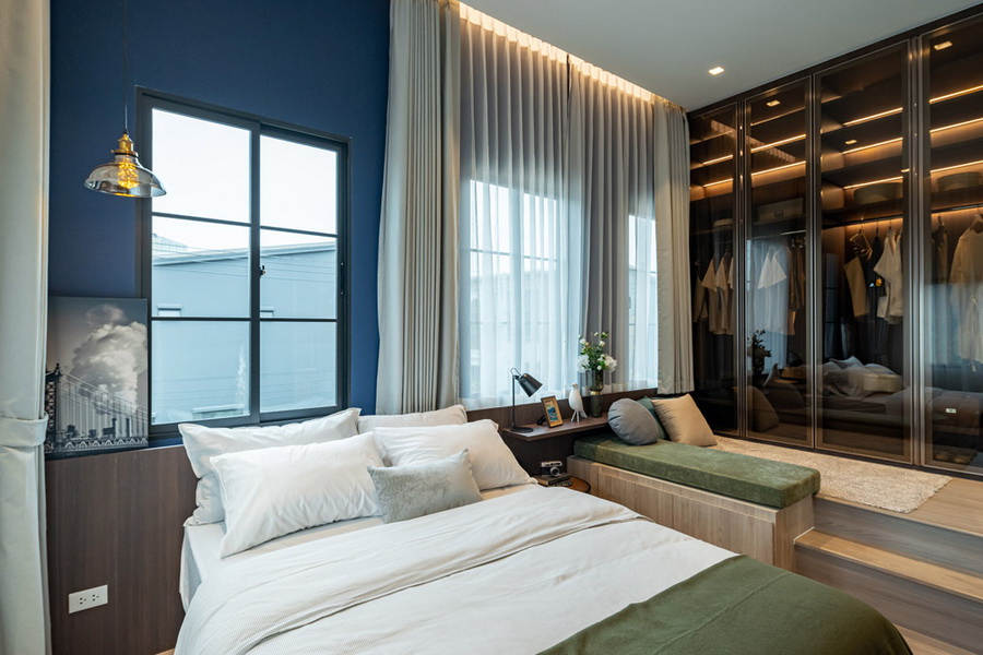 ความโดดเด่นภายในตัวบ้านนอกจากมีเพดานที่สูงโปร่งอยู่แล้ว ยังพิเศษด้วยช่องแสงธรรมชาติที่เพิ่มความสว่างและโปร่งโล่งสบายมากขึ้นอีก โดยเฉพาะห้องนอน Master Bedroom ใหญ่ที่มีความสูงถึง 3.7 เมตรพร้อมห้องน้ำในตัวและ Walk-in Closet ส่วนตัว