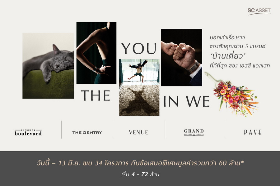 บริษัท เอสซี แอสเสท คอร์ปอเรชั่น จำกัด (มหาชน) ผู้พัฒนาอสังหาริมทรัพย์ชั้นนำ และ ส่งมอบ Living Solutions เพื่อทุกเช้าที่ดี ด้วยเป้าหมาย เพื่อมุ่งสู่แบรนด์บ้านเดี่ยวอันดับ 1 ในอนาคต SC จึงออกแบบสินค้า เพื่อตอกย้ำแนวคิดเรื่องนี้ แบ่งเป็น 3 ด้าน คือ โปรเจ็กต์, ดีไซน์ และโซลูชั่นเทคโนโลยีต่างๆ ที่ใส่ไว้ในตัวบ้านอย่างเหมาะสมลงตัว เพื่อให้ลูกค้าได้เลือกในสิ่งที่สามารถสะท้อนตัวตนของตัวเองออกมาได้ดีที่สุด กับการใช้ชีวิตอยู่บ้าน ไม่ว่าจะเป็นการทำงานในแบบ Work From Home และ ทำกิจกรรมต่างๆ ร่วมกันกับครอบครัวในช่วงเวลานี้ ภายใต้แคมเปญใหม่ล่าสุด "THE YOU IN WE""THE YOU IN WE" ชื่อแคมเปญ มาจาก อัตลักษณ์ที่แสดงออกว่า คุณคือใคร (THE YOU) เรา (WE = SC ASSET) จึงสร้าง 'พื้นที่' ให้คุณแสดงออกถึงตัวตน ผ่านเอกลักษณ์งานออกแบบทั้ง 5 แบรนด์ "บ้านเดี่ยว" ที่ดีที่สุด ของเอสซีฯ ภายใต้เอกลักษณ์ และ ไลฟ์สไตล์ที่แตกต่างกัน ได้แก่