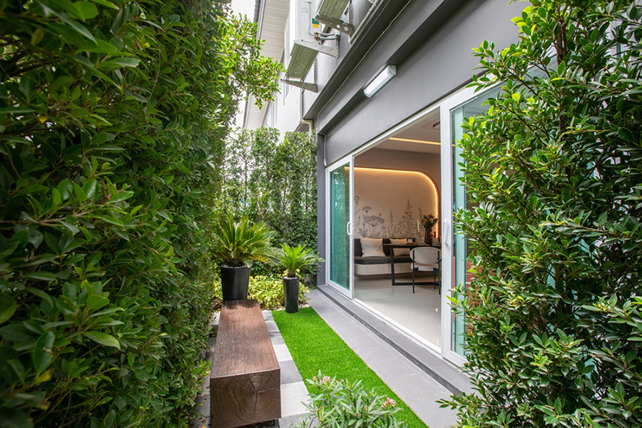 - ทาวน์โฮม 2 ชั้นนวัตกรรมใหม่ หน้ากว้าง 5.5 - 6.25 เมตร สร้างสรรค์พื้นที่หลังบ้านกว้างขวางขึ้น สำหรับเป็นมุมจัดสวนหรือกิจกรรมสำหรับครอบครัว พร้อมห้องนั่งเล่นที่รับแสงจากหลังบ้าน ขนาดพื้นที่ใช้สอย 126 - 141 ตร.ม. 3 ห้องนอน 3 ห้องน้ำ 2 ที่จอดรถ