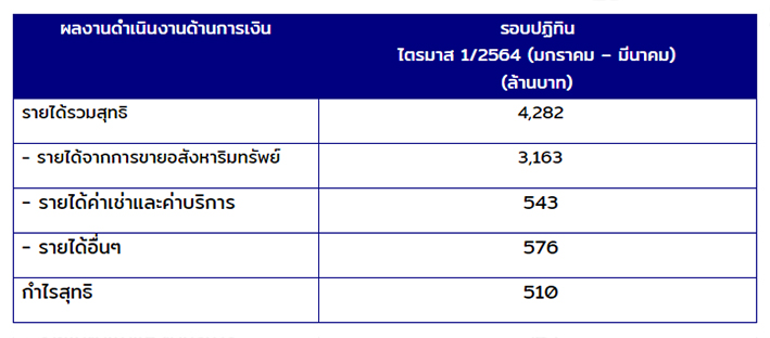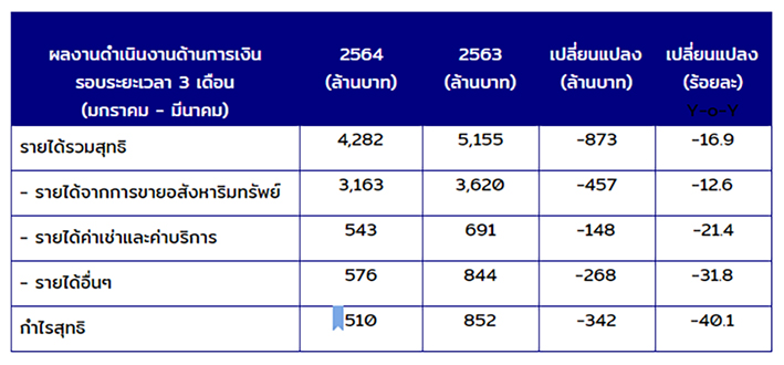 ผลงานดำเนินงานด้านการเงินรอบปฏิทิน ไตรมาส1/2564 (มกราคม-มีนาคม 2564)