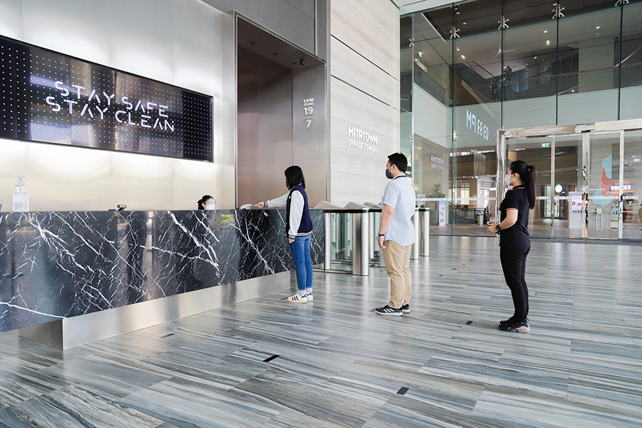 บริษัทฯ ตระหนักถึงความรุนแรงของเชื้อไวรัสโควิด-19 และการแพร่ระบาดอย่างรวดเร็วของเชื้อไวรัส พร้อมห่วงใยและใส่ใจในสุขภาพของพนักงานบริษัทผู้เช่าและผู้ใช้บริการพื้นที่อาคารสำนักงานที่มีจำนวนกว่า 20,000 คน ใน 5 อาคารสำนักงาน ภายใต้ความดูแลของบริษัทฯ จึงได้กำหนดมาตรการการป้องกันและดูแลรักษาความปลอดภัยขั้นสูงสุด โดยเริ่มปฏิบัติใช้ตั้งแต่ช่วงกลางปี 2563 ที่ผ่านมา และดำเนินการต่อเนื่องจนถึงปัจจุบัน เพื่อป้องกันการแพร่ระบาดของเชื้อโควิด-19 แม้ในช่วงเวลานี้หลายบริษัทผู้เช่าจะมีนโยบาย Work from Home แต่ก็ยังมีพนักงานบางส่วน บางหน่วยงาน บางธุรกิจที่ไม่สามารถ Work from Home และจำเป็นต้องเข้ามาทำงานภายในพื้นที่สำนักงาน บริษัทฯ จึงยังคงควบคุมการใช้มาตรการอย่างเคร่งครัด พร้อมลดความเสี่ยงของการระบาดและรักษาความปลอดภัย เพิ่มความสบายใจให้แก่ทุกคนที่เข้าใช้บริการในอาคาร